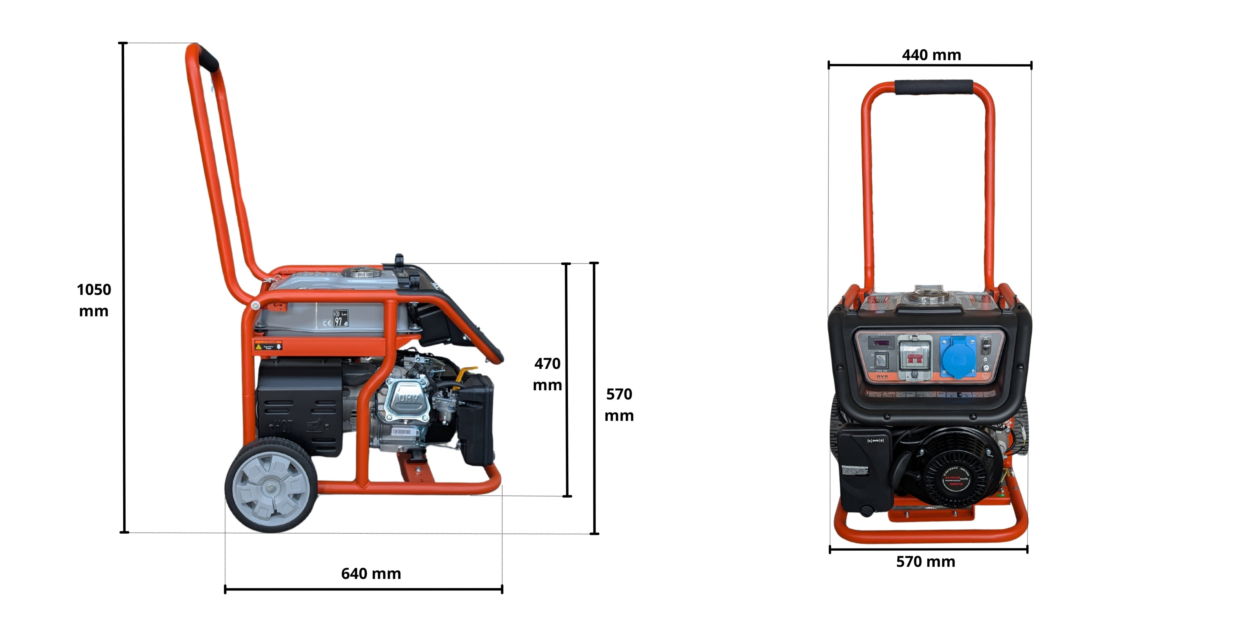 Generatore di corrente monofase portatile realizzato su telaio in acciaio